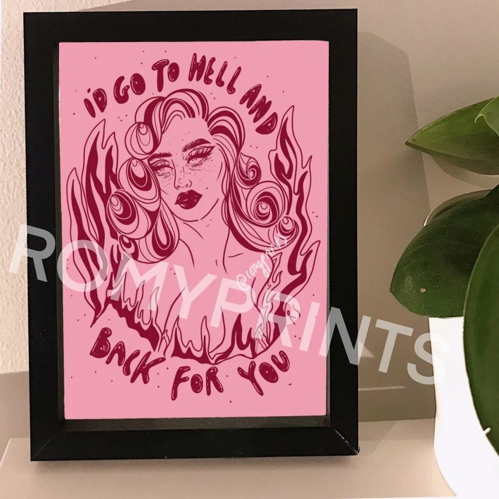 Romy Prints I D Go To Hell And Back For You Pin Up Devil Original Digital Illustration Glossy Art Print Poster Wall Art A3 A4 Romyprints